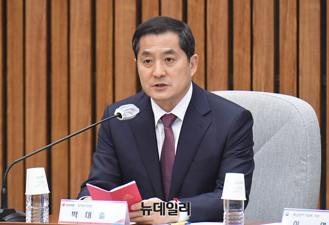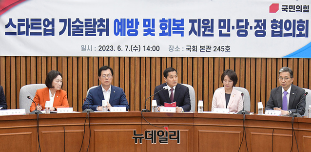 박대출 국민의힘 정책위의장이 7일 오후 국회에서 열린 스타트업 기술탈취 예방 및 회복 지원 민·당·정 협의회에서 모두발언을 하고 있다.