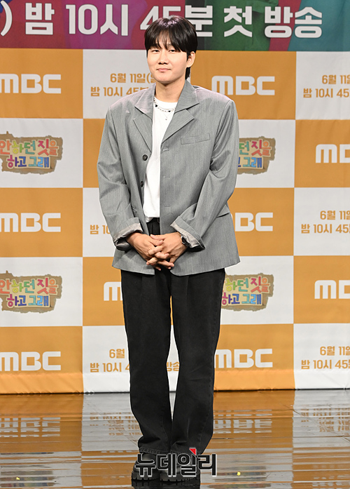 개그맨 이용진이 8일 오후 서울 마포구 상암MBC에서 열린 신규 예능 '안하던 짓을 하고 그래' 제작발표회에서 포토타임을 갖고 있다.