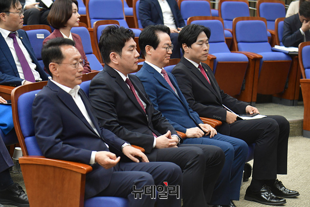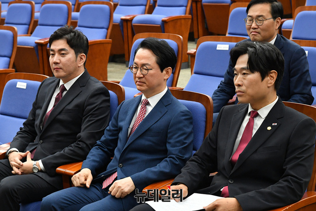 [포토] 전국위 기다리는 김가람·천강정·이종배 최고위원 후보