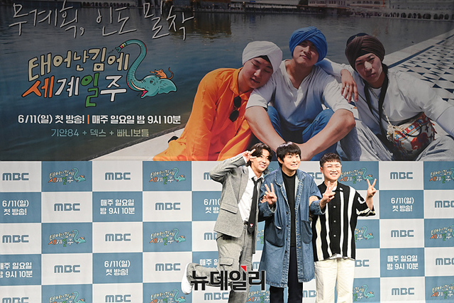 방송인 덱스, 기안84, 빠니보틀이 9일 오후 서울 마포구 상암MBC에서 열린 신규 예능 '태어난 김에 세계일주2(연출 김지우)' 제작발표회에서 포토타임을 갖고 있다.