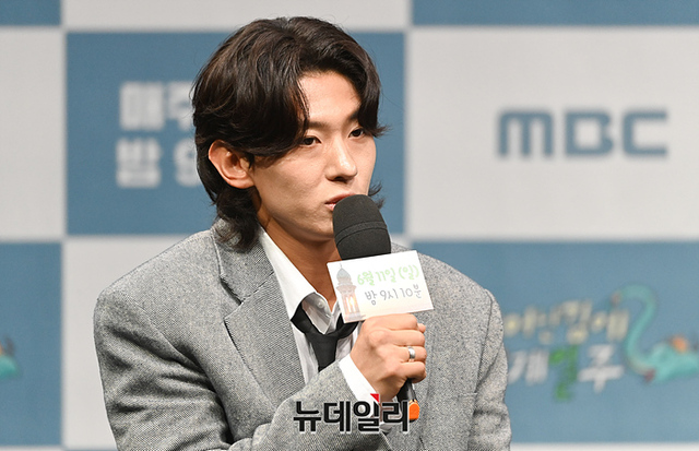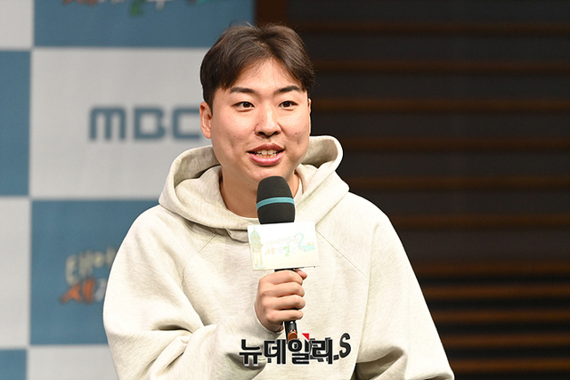 방송인 덱스, 기안84, 빠니보틀이 9일 오후 서울 마포구 상암MBC에서 열린 신규 예능 '태어난 김에 세계일주2(연출 김지우)' 제작발표회에서 소감을 발표하고 있다.