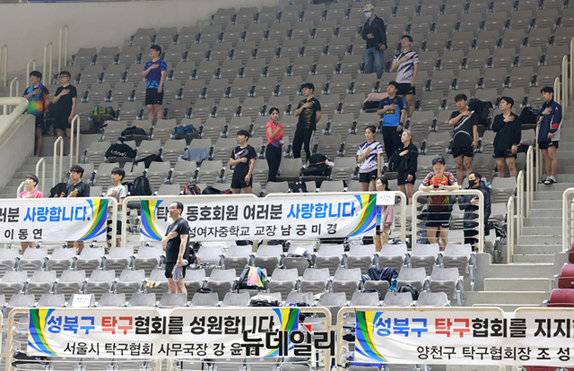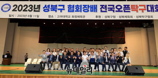 2023 성북구협회장배 전국오픈탁구대회 개회식이 11일 오전 서울 성북구 고려대학교 화정체육관에서 진행되고 있다. 개회식에는 이승로 성북구청장, 기동민 국회의원, 류희복 서울시 탁구협회장, 하광호 성북구 체육회장, 신승근 성북구 탁구협회장, 한상학 성북갑당협위원장 등이 참석했다.