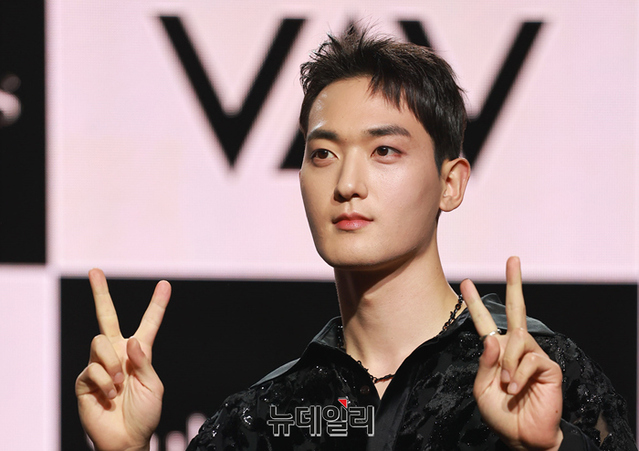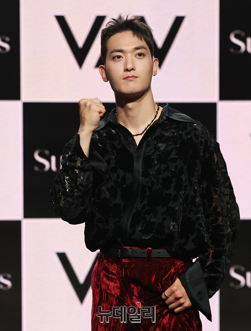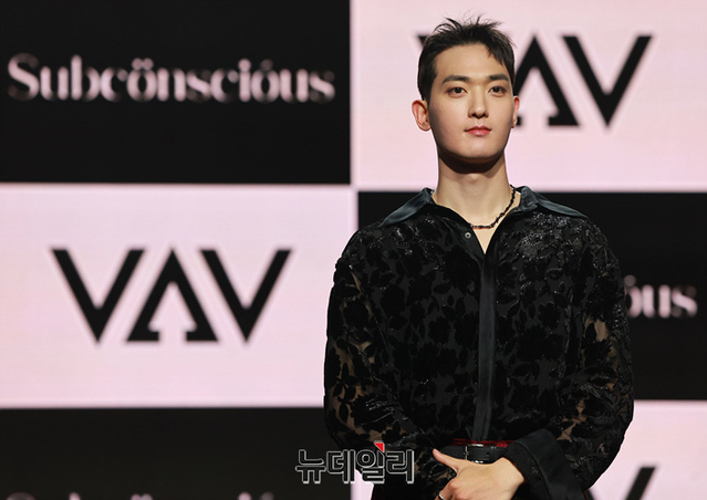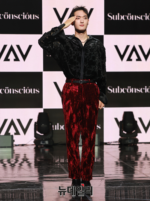 아이돌그룹 VAV(브이에이브이) 지우가 12일 오후 서울 강남구 일지아트홀에서 열린 미니 7집 서브칸셔스 쇼케이스에서 포토타임을 갖고 있다.