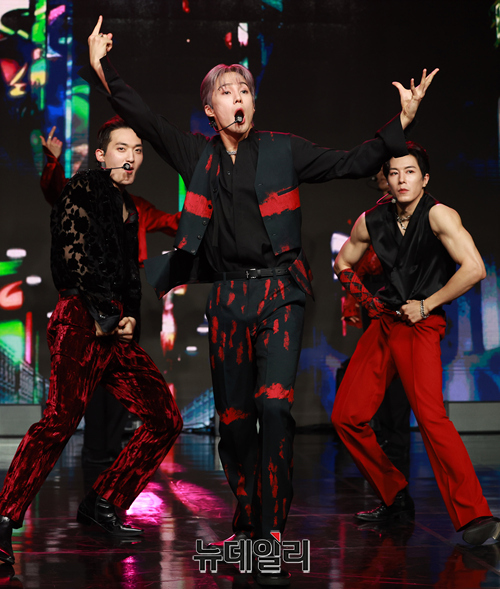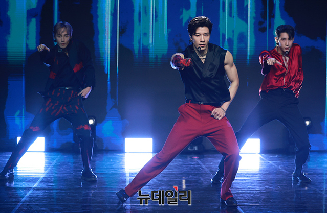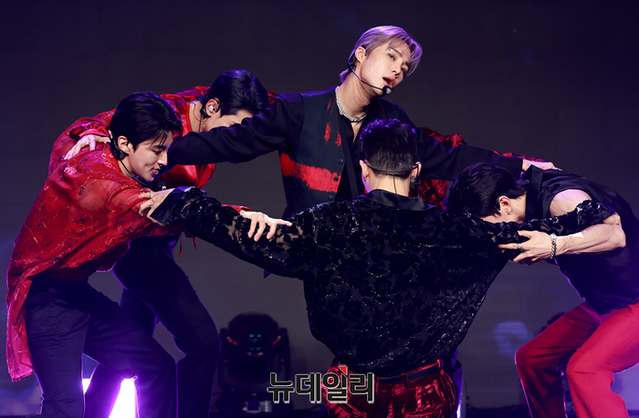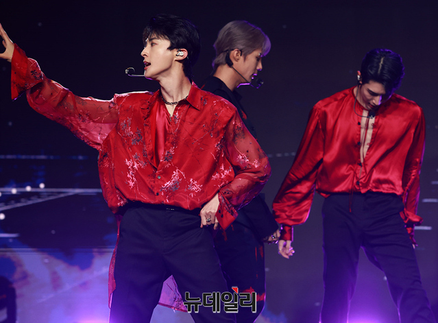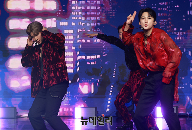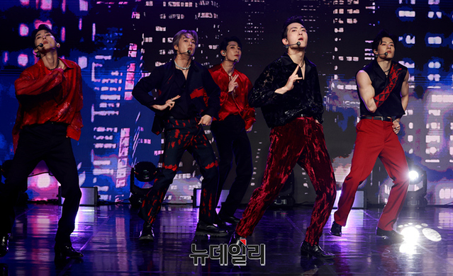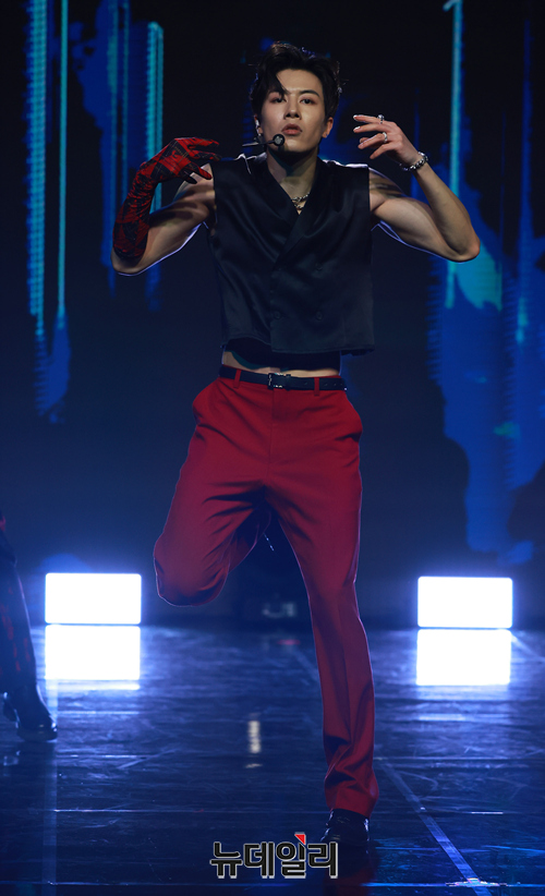 아이돌그룹 VAV(브이에이브이)가 12일 오후 서울 강남구 일지아트홀에서 열린 미니 7집 서브칸셔스(Subconscious) 쇼케이스에서 수록곡 무대를 선보이고 있다.