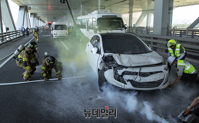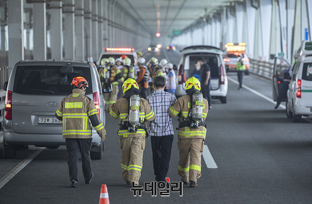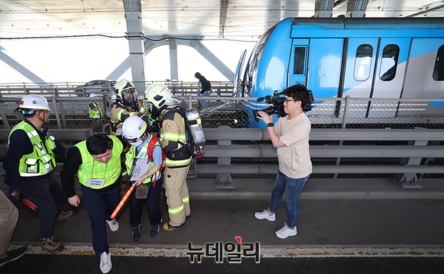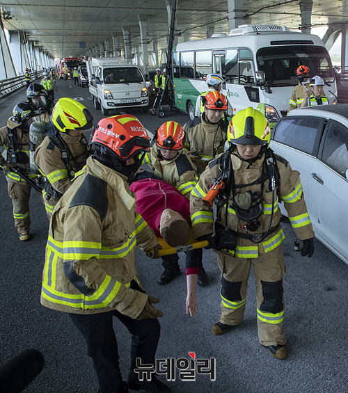 2023 재난대응 안전한국훈련이 13일 오후 인천 중구 신공항하이웨이 영종방면 영종대교 하부에서 진행되고 있다.