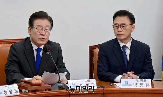 이재명 더불어민주당 대표가 14일 오전 국회에서 열린 최고위원회의에서 모두발언을 하고 있다.