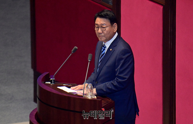 김교흥 행정안전위원장이 14일 오후 국회에서 열린 본회의 상임위원장 보궐선거에서 당선 후 인사말을 하고 있다