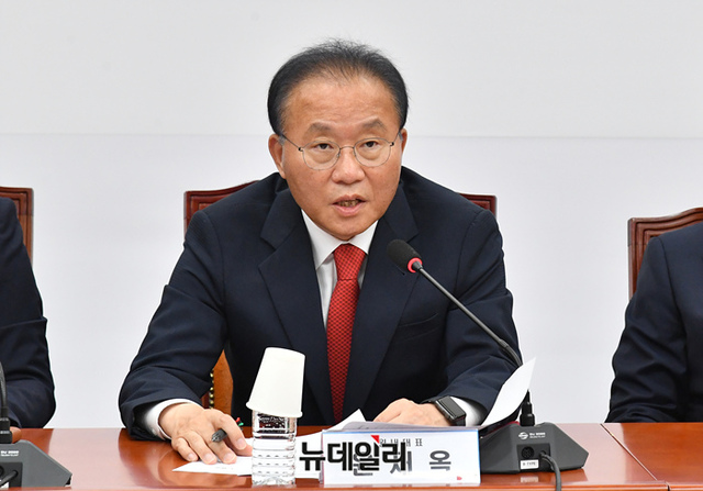 윤재옥 국민의힘 원내대표가 15일 오전 국회에서 열린 최고위원회의에서 모두발언을 하고 있다.