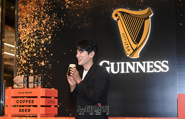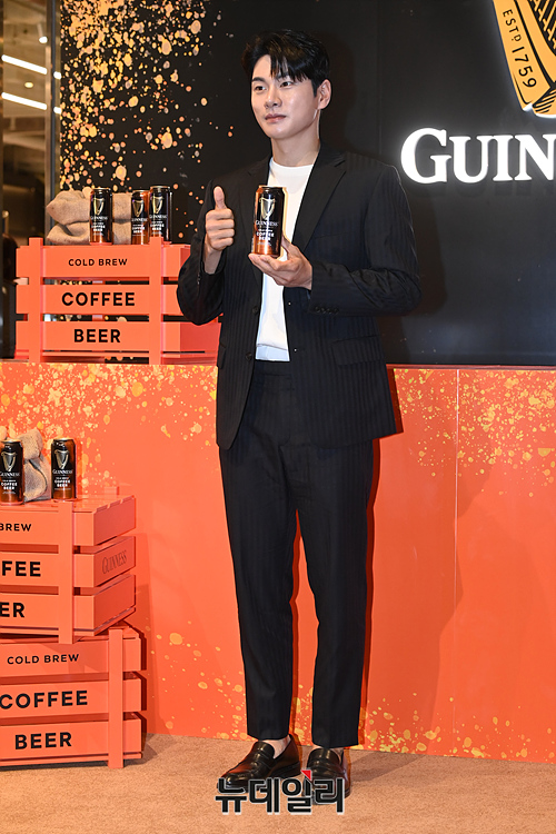 배우 이이경이 16일 오전 서울 여의도 더 현대 서울에서 열린 팝업스토어 '카페 기네스' 포토행사에서 포즈를 취하고 있다.기네스 콜드브루 출시를 기념해 6월 16일부터 28까지 서울 여의도 더현대 서울에 팝업스토어 '카페 기네스(Café Guinness)'를 마련한다. 팝업에는 기네스 콜드브루를 구매한 고객 대상으로 전용잔을 한정 수량으로 증정한다. 또 기네스의 크리미한 거품 표면 위에 원하는 이미지를 프린트하는 스타우티 서비스도 선보일 예정이다.