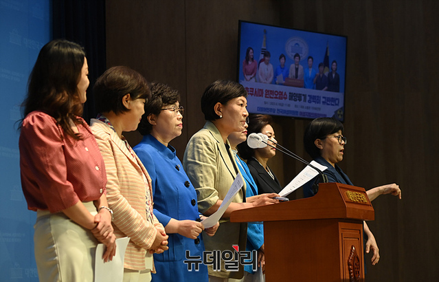 [포토] 후쿠시마 원전 오염수 반대성명 발표하는 이재정 의원
