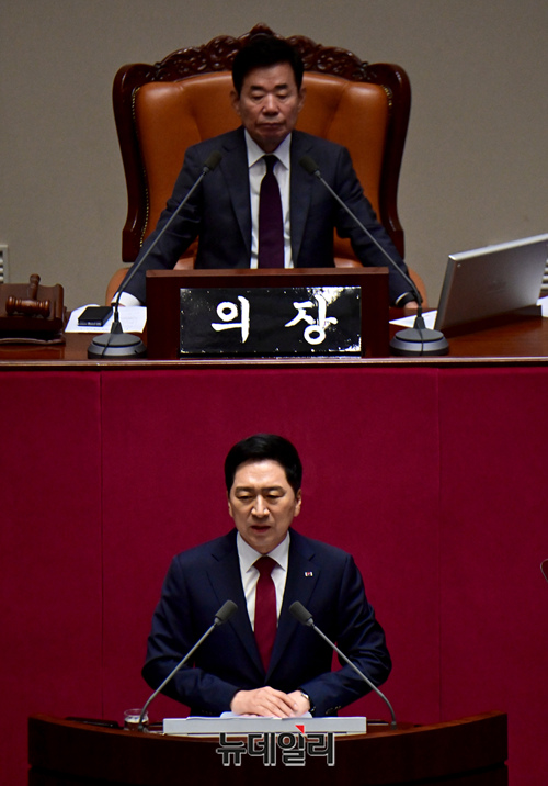[포토] 교섭단체 대표연설 하는 김기현 국민의힘 대표
