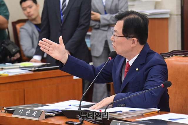 이만희 국민의힘 행정안전위원회 간사가 22일 국회에서 열린 행안위 전체회의에서 김교흥 위원장과 '10·29 이태원 참사 진상규명 특별법' 상정과 관련해 언쟁을 벌이고 있다.