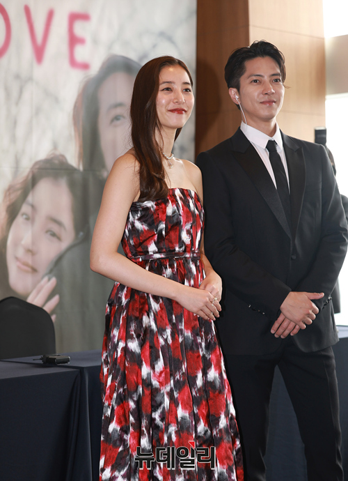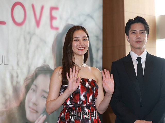 일본배우 야마시타 토모히사, 아라키 유코가 22일 오전 서울 강남구 인터컨티넨탈 서울코엑스에서 열린 영화 'SEE HEAR LOVE(보지 못하고 듣지 못하고 사랑해, 감독 이재한)' 아시아투어 기자간담회에서 포토타임을 갖고 있다.'SEE HEAR LOVE'는 카카오웹툰에 연재된 '보지 못하고듣지 못하고 사랑해'를 원작으로 시각장애를 얻게 된 남성 웹툰 작가 신지가 선천적 청각장애를 지닌 여성 히비키를 만나 진정한 사랑과 희망을 느끼는 이야기다.한국 방문을 시작으로 아시아 투어에 나선 두 배우는 홍콩, 대만, 태국 등 4개 지역을 방문할 예정이다.