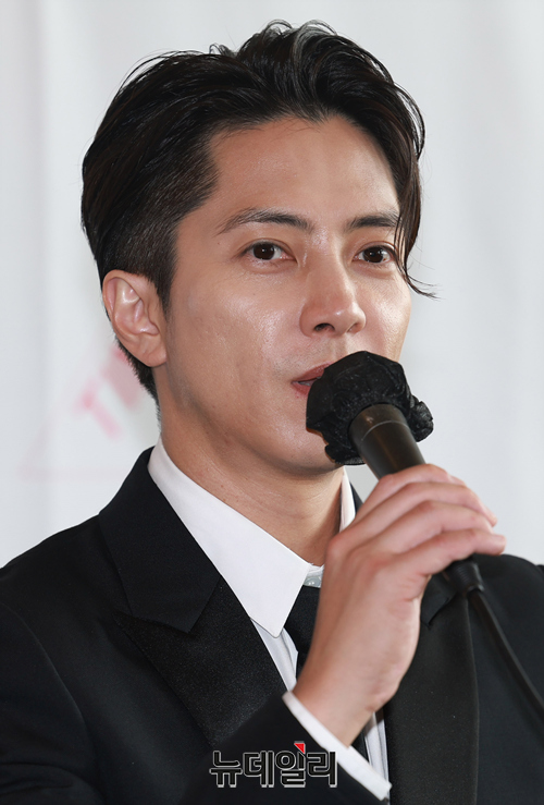 일본배우 야마시타 토모히사가 22일 오전 서울 강남구 인터컨티넨탈 서울코엑스에서 열린 영화 'SEE HEAR LOVE(보지 못하고 듣지 못하고 사랑해, 감독 이재한)' 아시아투어 기자간담회에서 인사말을 하고 있다.SEE HEAR LOVE는 카카오웹툰에 연재된 '보지 못하고듣지 못하고 사랑해'를 원작으로 시각장애를 얻게 된 남성 웹툰 작가 신지가 선천적 청각장애를 지닌 여성 히비키를 만나 진정한 사랑과 희망을 느끼는 이야기다.한국 방문을 시작으로 아시아 투어에 나선 두 배우는 홍콩, 대만, 태국 등 4개 지역을 방문할 예정이다.