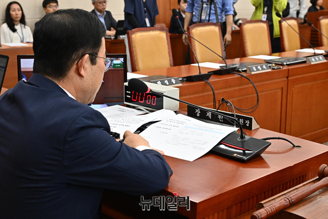 장제원 위원장 불참으로 직무대리를 맡은 박성중 국민의힘 간사가 22일 오후 국회에서 열린 과학기술정보방송통신위원회 전체회의에서 산회를 선포하고 있다.