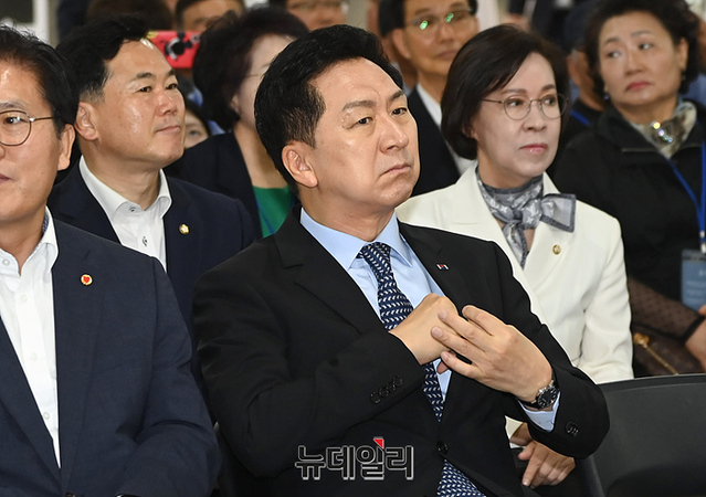 김기현 국민의힘 대표가 26일 오전 국회 의원회관에서 열린 운정 김종필 추모사진전에 참석하고 있다.