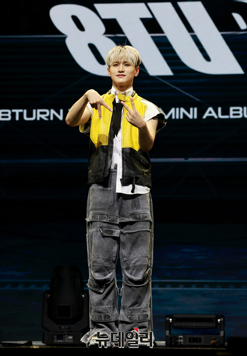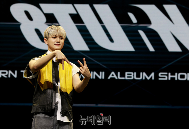 아이돌그룹 8TURN(에잇턴) 리더 재윤이 26일 오후 서울 광진구 예스24라이브홀에서 열린 두번째 미니앨범 'UNCHARTED DRIFT(언차티드 드리프트)' 쇼케이스에서 포토타임을 갖고 있다.