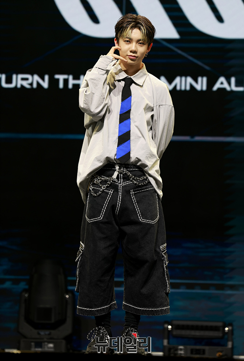 아이돌그룹 8TURN(에잇턴) 막내 승헌이 26일 오후 서울 광진구 예스24라이브홀에서 열린 두번째 미니앨범 'UNCHARTED DRIFT(언차티드 드리프트)' 쇼케이스에서 포토타임을 갖고 있다.