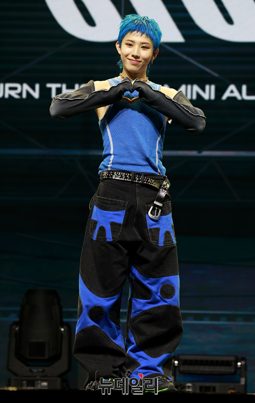 아이돌그룹 8TURN(에잇턴) 래퍼 윤규가 26일 오후 서울 광진구 예스24라이브홀에서 열린 두번째 미니앨범 'UNCHARTED DRIFT(언차티드 드리프트)' 쇼케이스에서 포토타임을 갖고 있다.