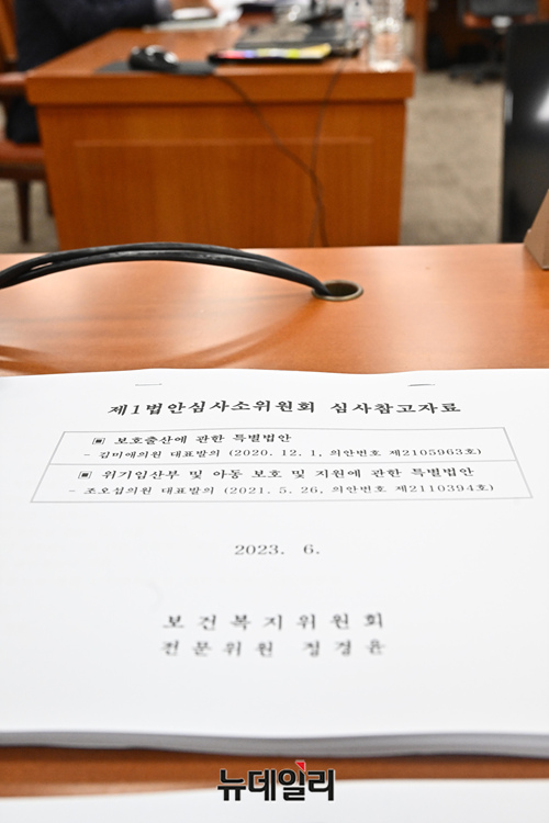 강기윤 보건복지위원회 제1법안심사소위원장이 27일 오전 국회 보건복지위원회 회의실에서 열린 제1법안심사소위원회에서 의사봉을 두드리고 있다.