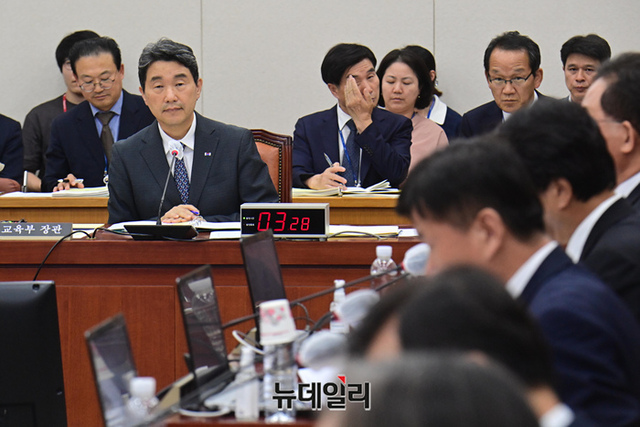 이주호 사회부총리 겸 교육부 장관이 27일 오후 국회에서 열린 교육위원회 전체회의에서 의원들의 질문에 답하고 있다.