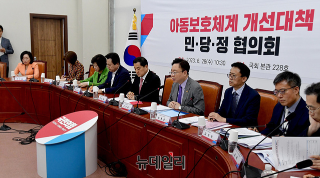 조규홍 보건복지부 장관이 28일 오전 국회에서 열린 아동보호체계 개선대책 민·당·정협의회에서 모두발언을 하고 있다.