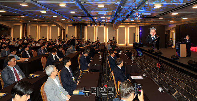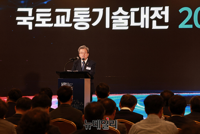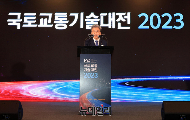 이원재 국토교통부 제1차관이 28일 오전 서울 강남구 코엑스에서 열린 '2023 국토교통 기술대전' 개막식에서 기념사를 하고 있다.