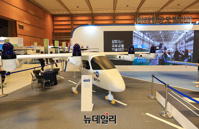 이원재 국토교통부 제1차관이 28일 오전 서울 강남구 코엑스에서 개막한 '2023 국토교통 기술대전'에 참석해 미래항공모빌리티와 E-모빌리티 부스를 체험하고 있다.