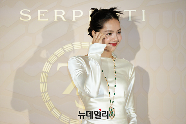 블랙핑크 리사가 28일 오후 서울 종로구 국제갤러리에서 열린 '불가리 세르펜티 75주년, 그 끝없는 이야기' 전시 포토월에서 포토타임을 갖고 있다.