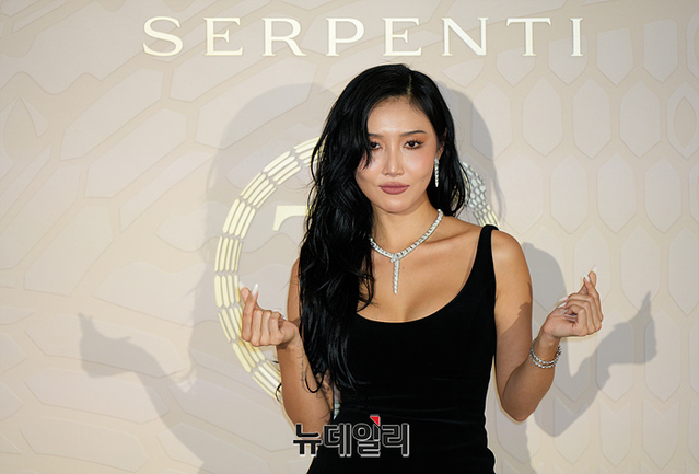 가수 화사가 28일 오후 서울 종로구 국제갤러리에서 열린 '불가리 세르펜티 75주년, 그 끝없는 이야기' 전시 포토월에서 포토타임을 갖고 있다.