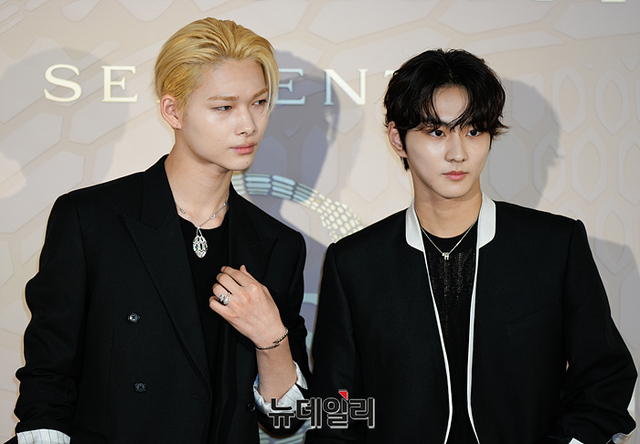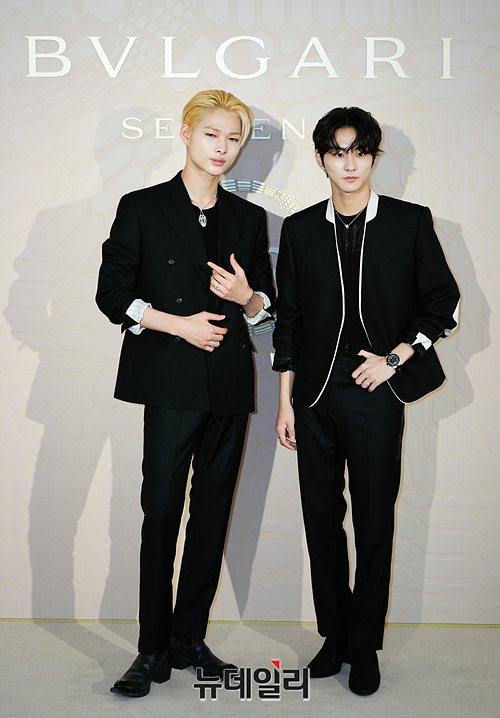 엔하이픈 니키와 정원이 28일 오후 서울 종로구 국제갤러리에서 열린 '불가리 세르펜티 75주년, 그 끝없는 이야기' 전시 포토월에서 포토타임을 갖고 있다.