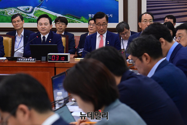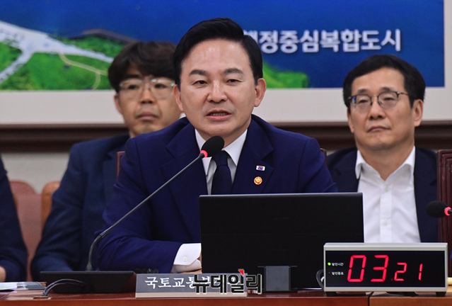 원희룡 국토교통부 장관이 29일 국회에서 열린 국토교통위원회 전체회의에 출석해 의원들의 질문에 답하고 있다.