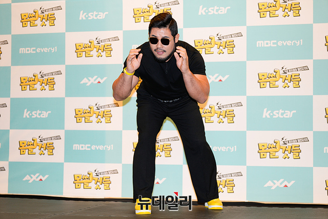 레슬링선수 남경진이 29일 오후 서울 마포구 스탠포드 호텔에서 열린 AXN, Kstar, MBC에브리원 신규 예능 '몸쓸것들:S급 피지컬의 챌린지 100(연출 황교순)' 제작발표회에서 포토타임을 갖고 있다.
