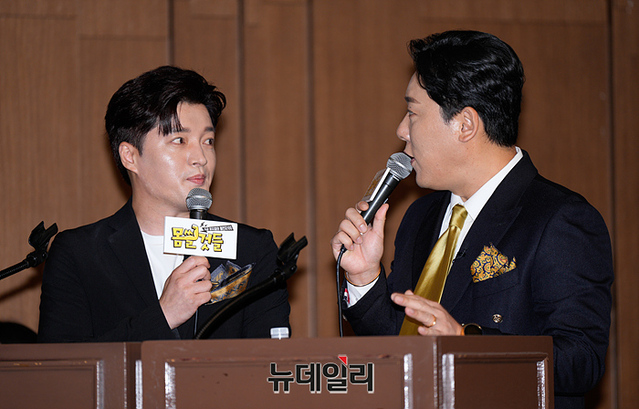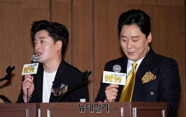 코미디언 남호연과 최성민이 29일 오후 서울 마포구 스탠포드 호텔에서 열린 AXN, Kstar, MBC에브리원 신규 예능 '몸쓸것들:S급 피지컬의 챌린지 100(연출 황교순)' 제작발표회에서 포즈를 취하고 있다.