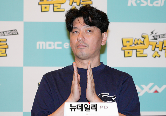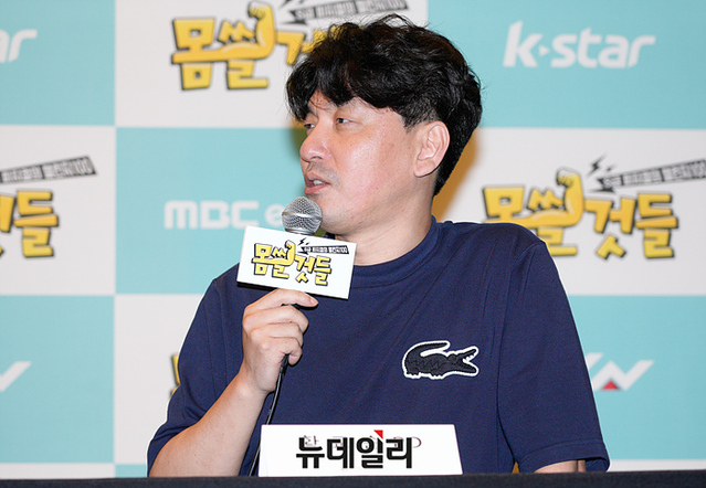 황교순 PD가 29일 오후 서울 마포구 스탠포드 호텔에서 열린 AXN, Kstar, MBC에브리원 신규 예능 '몸쓸것들:S급 피지컬의 챌린지 100' 제작발표회에서 취재진의 질문에 답하고 있다.