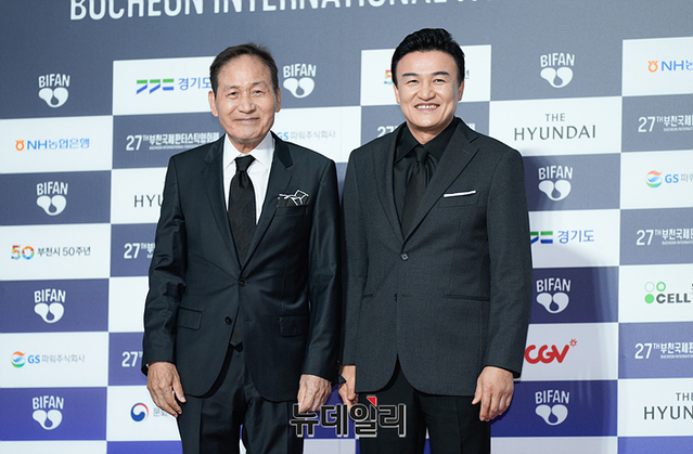 배우 안성기와 박중훈이 29일 오후 부천시청에서 열린 부천국제판타스틱영화제 개막식 레드카펫 행사에서 포토타임을 갖고 있다. (경기 부천=서성진 기자)