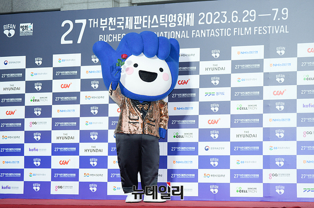 부천시 마스코트 '부천핸썹'이 29일 오후 부천시청에서 열린 부천국제판타스틱영화제 개막식 레드카펫 행사에서 포토타임을 갖고 있다. (경기 부천=서성진 기자)