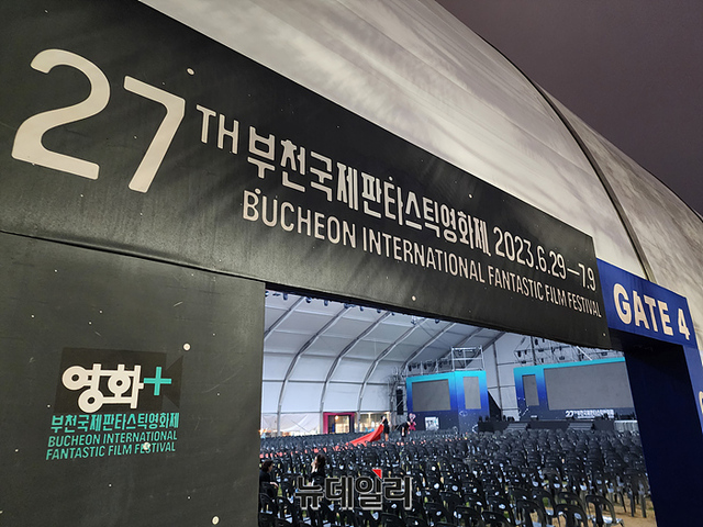 제27회 부천국제판타스틱영화제 개막식을 위해 임시로 설치된 대형텐트가 29일 오후 행사가 종료된 후 철거를 준비중이다. (경기 부천=서성진 기자)