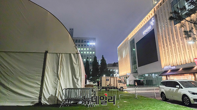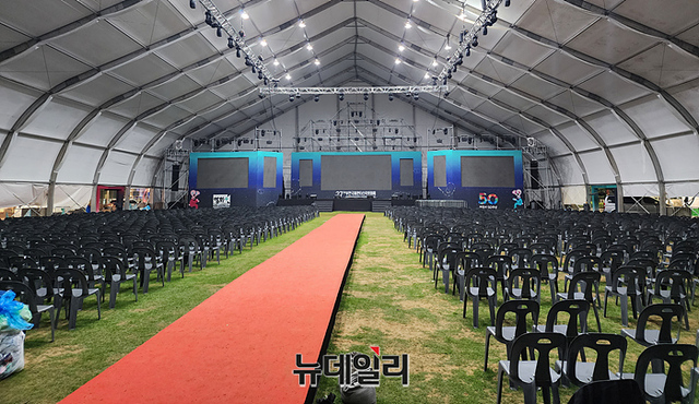 [포토] 1천억원 들인 아트센터 옆 '영화제 개막식용 대형텐트'