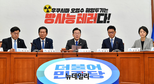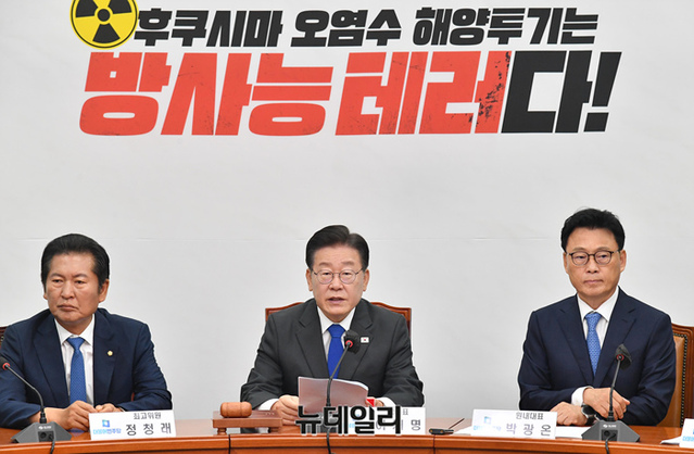 이재명 더불어민주당 대표가 30일 오전 국회에서 열린 최고위원회의에 참석해 모두발언을 하고 있다.