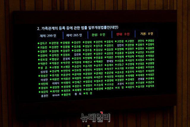 '출생통보제' 도입을 위한 '가족관계 등록 등에 관한 법률 개정안'이 30일 국회에서 열린 본회의를 통과하고 있다.