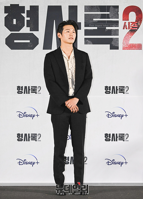 배우 이학주가 3일 오후 서울 용산구 CGV 용산아이파크몰에서 열린 디즈니+ 드라마 '형사록 시즌2(감독 한동화)' 언론시사회에서 포토타임을 갖고 있다.