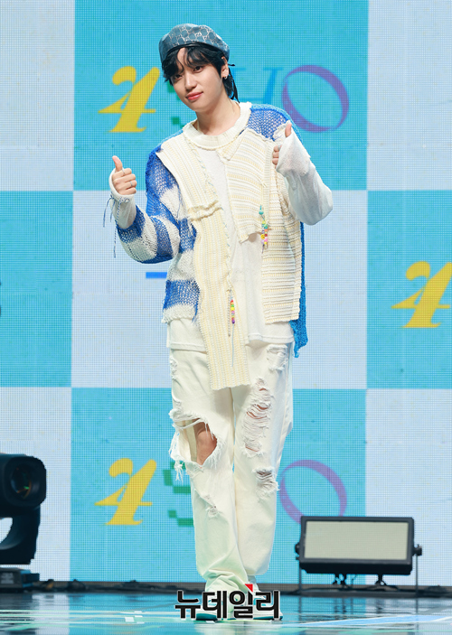 틴탑 니엘이 4일 오후 서울 광진구 예스24라이브홀에서 열린 '4SHO' 쇼케이스에서 포토타임을 갖고 있다.