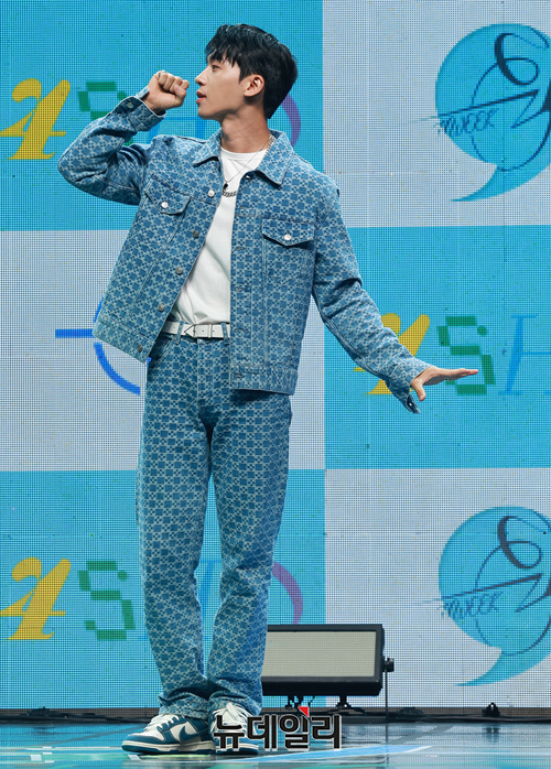 틴탑 창조가 4일 오후 서울 광진구 예스24라이브홀에서 열린 '4SHO' 쇼케이스에서 포토타임을 갖고 있다.