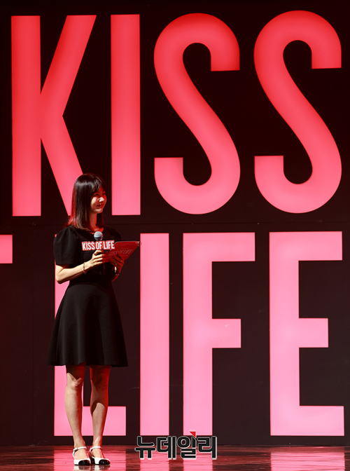 방송인 박소현이 5일 오후 서울 광진구 예스24 라이브홀에서 열린 신인 걸그룹 'KISS OF LIFE(키스 오브 라이프)' 데뷔 쇼케이스에서 인사말을 하고 있다.팀명 '키스 오브 라이프'는 인공호흡이라는 원 의미를 바탕으로 음악을 통해 자유로움을 추구하며 진실한 자아를 찾는다는 메시지를 담고 있다.솔로 활동으로 대중에게 익숙한 나띠를 비롯해 벨, 쥴리, 하늘까지 총 4명의 멤버로 구성됐다.타이틀 '쉿'을 포함해 총 6트랙을 담았다. 음원은 오후 6시 공개.