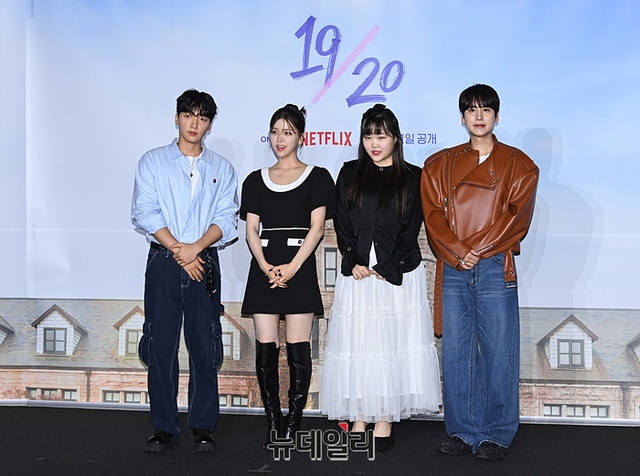 정세운, 김지은, 이수현, 규현이 6일 오전 서울 용산구 CGV 용산아이파크몰에서 열린 넷플릭스 리얼리티 예능 '19/20(열아홉 스물)' 제작발표회에서 포토타임을 갖고 있다.