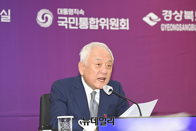 김한길 국민통합위원장이 6일 오후 정부서울청사에서 열린 국민통합위원회 경상북도지역협의회 출범식에서 발언하고 있다.