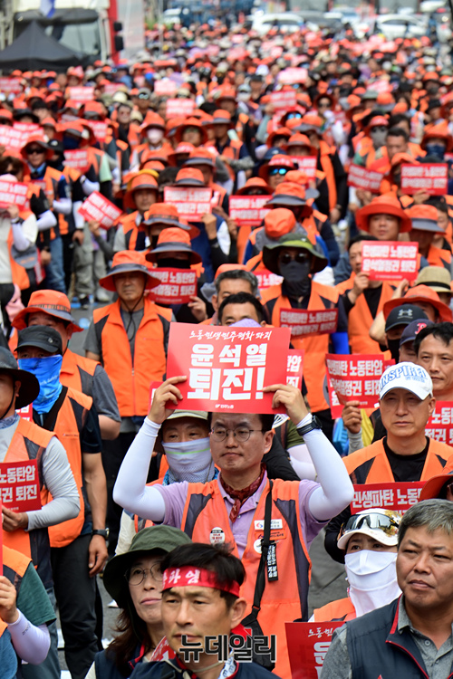 이날 참석자들은 노조탄압 중단, 일본 핵오염수 해양 투기 중단, 최저임금 인상, 공공요금 인상철회, 공공의료 확충, 중대재해 처벌 강화, 집회시위 자유 등을 요구하며 2주간 총파업에 돌입한다고 밝혔다.