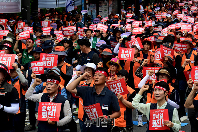 [포토] 민노총 도심 집회 "尹 정권 퇴진·최저임금 인상"
