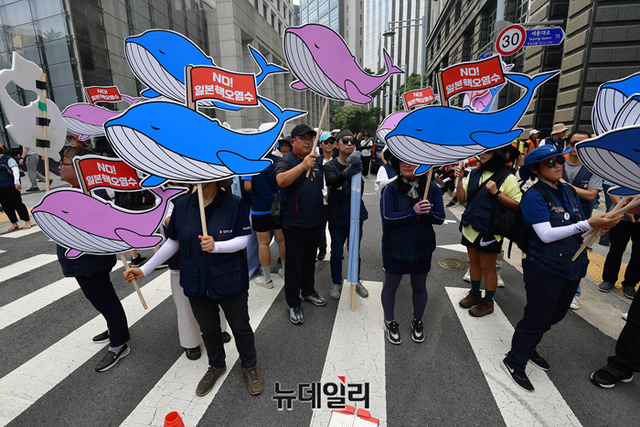 이날 참석자들은 노조탄압 중단, 일본 핵오염수 해양 투기 중단, 최저임금 인상, 공공요금 인상철회, 공공의료 확충, 중대재해 처벌 강화, 집회시위 자유 등을 요구하며 2주간 총파업에 돌입한다고 밝혔다.